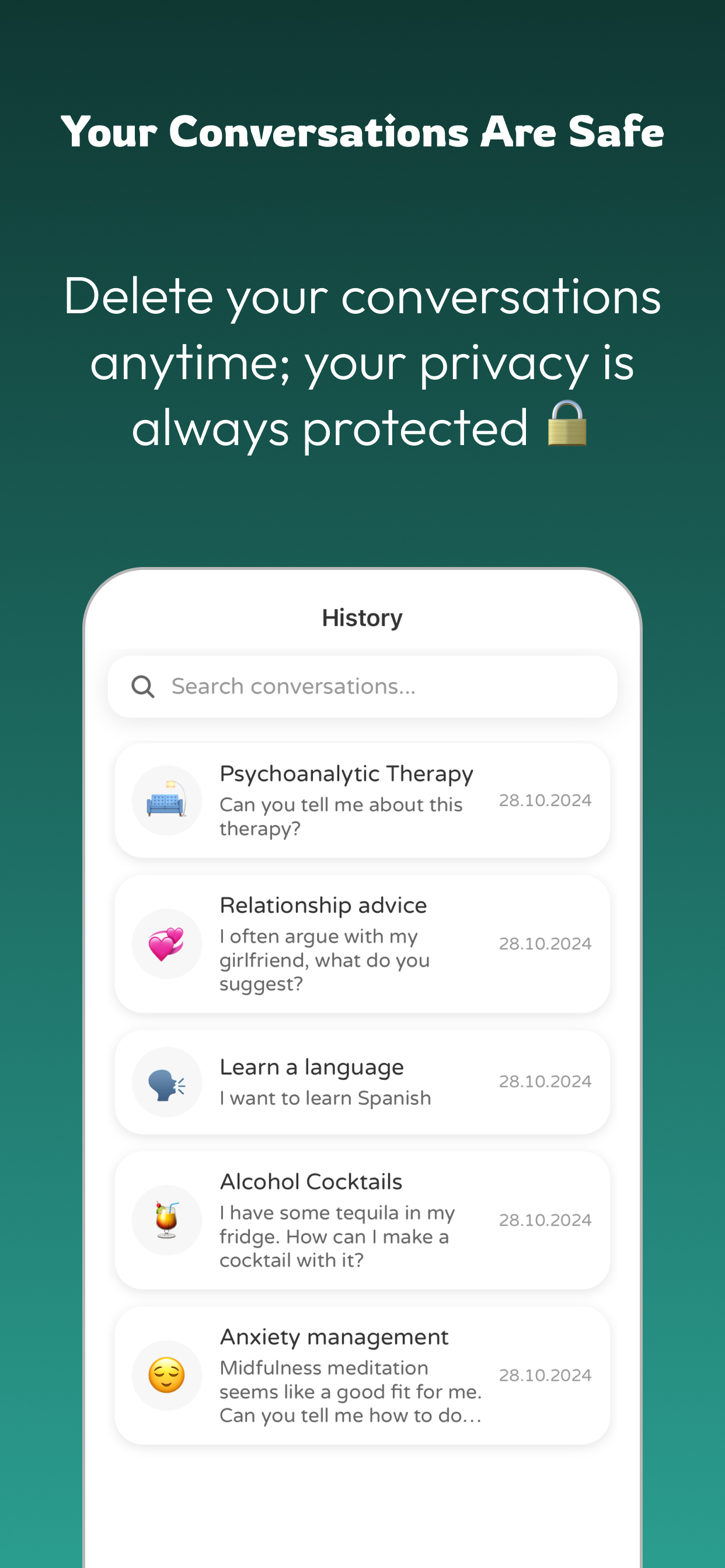 Connect with Alya, an AI-powered therapy chat app designed to support your mental health and personal growth. Choose from over 100 AI models in 22 languages to receive personalized support anytime, anywhere.